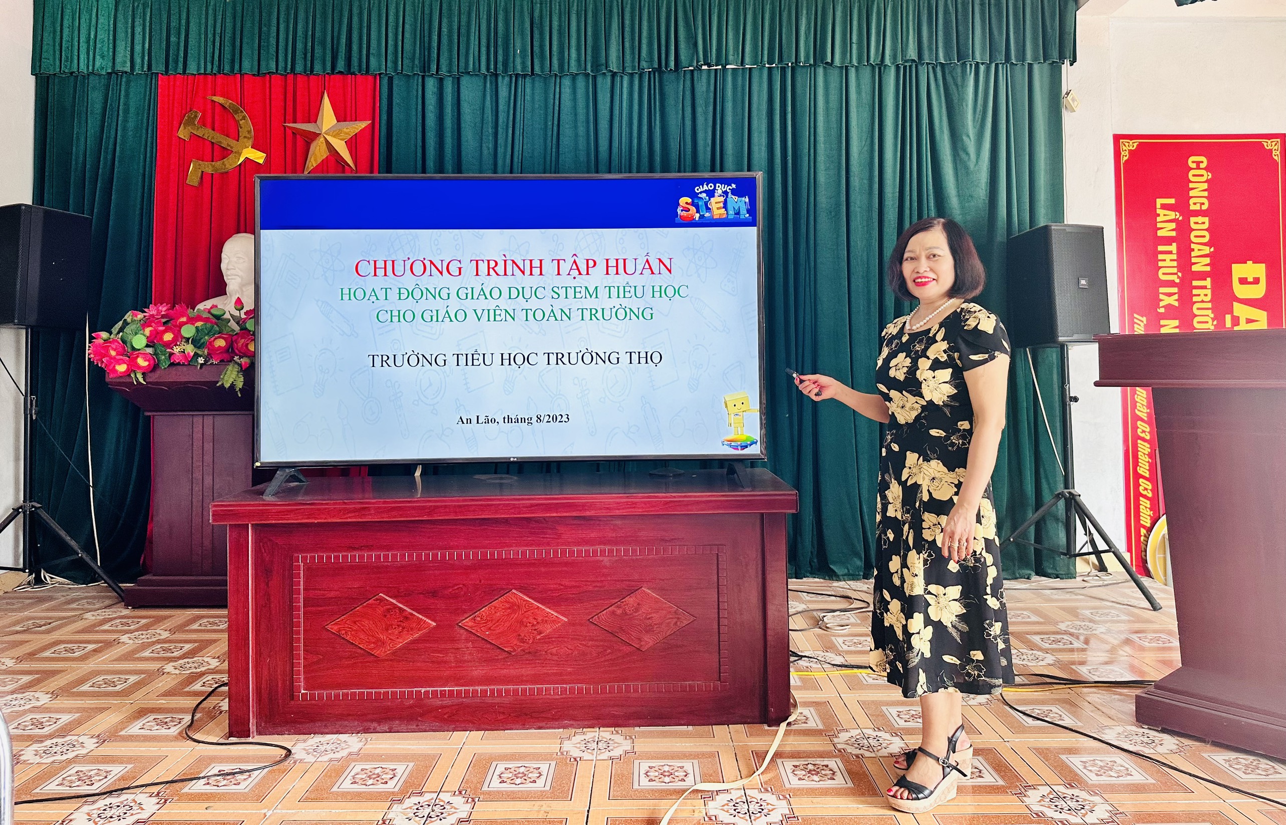 hực hiện kế hoạch số 62/KH-SGDĐT ngày 8/5/2023 của Sở Giáo dục và Đào tạo Hải Phòng về tổ chức hoạt động Giáo dục STEM trong Giáo dục Tiểu học năm học 2023 - 2024, ngày 3,4/8/2023 trường đã cử 2 đồng chí CBGV tham gia lớp tập huấn giáo dục STEM do Sở Giáo dục Hải Phòng tổ chức, ngày 9/8/2023 nhà trường đã tổ chức tập huấn cho toàn thể CBGV của trường nhằm nâng cao nhận thức cho cán bộ quản lí và giáo viên về vị trí vai trò và ý nghĩa của Giáo dục STEM cấp tiểu học. Buổi tập huấn do đồng chí Hoàng Thị Nội - PHT chủ trì. Sau buổi tập huấn chung, các tổ tiếp tục nghiên cứu, xây dựng bài học STEM cụ thể của từng khối lớp và dạy chuyên đề vào tuần 4 tháng 8.