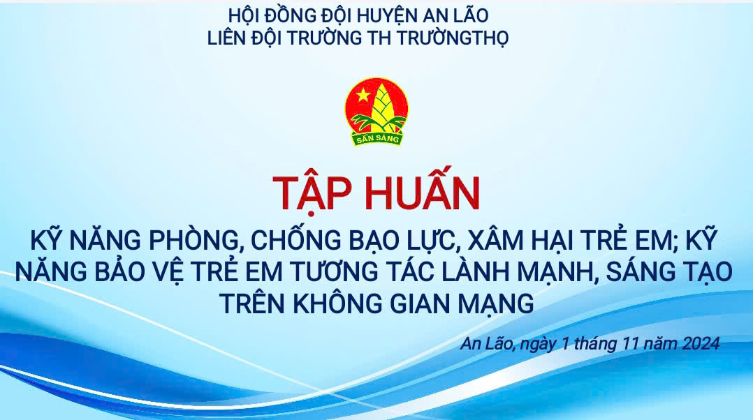 Thực hiện Chương trình công tác Đội năm học 2024 - 2025, Liên đội TH Trường Thọ tổ chức Tập huấn kỹ năng, phòng chống bạo lực, xâm hại trẻ em, kỹ năng bảo vệ trẻ em tương tác lành mạnh trên không gian mạng cho BCH Liên, chi đội năm học 2024 - 2025.