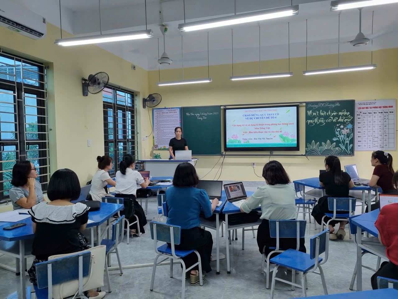 Qua chuyên đề, giáo viên trong tổ 4 đã cùng nhau chia sẻ, rút kinh nghiệm về việc kết hợp phương pháp dạy học tích cực với công nghệ hiện đại, đặc biệt là ứng dụng AI trong việc thiết kế bài giảng, tạo tư liệu phong phú, cá nhân hóa việc học cho học sinh. Học sinh không chỉ tiếp thu kiến thức nhanh hơn mà còn được rèn luyện kỹ năng sử dụng công nghệ trong học tập.