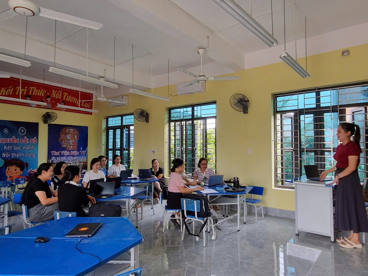 Thực hiện kế hoạch sinh hoạt chuyên môn của nhà trường, ngày 15 tháng 8 năm 2025, Tổ 4 đã tổ chức chuyên đề với nội dung “Vận dụng AI và phòng học thông minh trong dạy học môn Toán lớp 4”. Đây là hoạt động thiết thực nhằm đổi mới phương pháp giảng dạy, phát huy năng lực học sinh, đồng thời đáp ứng yêu cầu đổi mới giáo dục trong giai đoạn hiện nay.