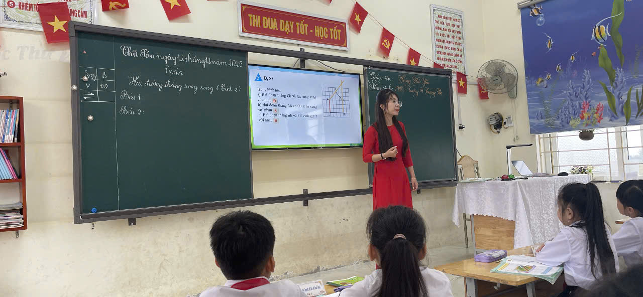 Ngày 12/12/2025 tại trường TH Trường Thọ, cô giáo Nguyễn Thị Hoa và cô Hoàng Hải Yến đã đại diện khối 4 tham gia phần thi dạy môn Toán và môn Tiếng Việt trong Hội thi Giáo viên dạy giỏi cấp xã năm học 2025 – 2026. Đây là nội dung quan trọng nhằm đánh giá năng lực chuyên môn, khả năng tổ chức hoạt động học tập và mức độ đổi mới phương pháp giảng dạy của giáo viên bậc Tiểu học.