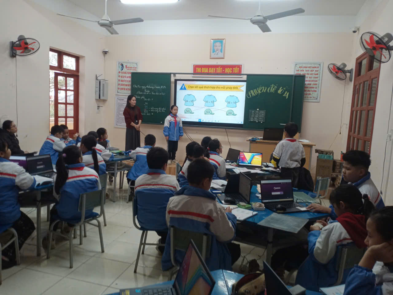 Trong chuyên đề này, giáo viên đã áp dụng phòng học thông minh để giảng dạy bài " Nhân với số có hai chữ số " một chủ đề quan trọng trong chương trình Toán 4. Mở đầu tiết học là phần khởi động vui tươi, nhí nhảnh tạo cho không khí lớp học được sôi nổi. Từ đó giáo viên đã dẫn dắt vào bài dạy một cách linh hoạt đầy hứng thú. Với phần khám phá kiến thức và các hoạt động của bài học được áp dụng các phương pháp và hình thức dạy học mới như phần mềm AI, phần mềm Quizizz... giúp học sinh tiếp thu kiến thức một cách dễ dàng .Tiết dạy đã được giáo viên tích cực ứng dụng công nghệ thông tin, khai thác sử dụng phòng học thông minh, phần mềm học liệu số, vận dụng linh hoạt các phương pháp dạy học mới, đa dạng hoá các hình thức luyện tập nhằm kích thích tư duy sáng tạo của học sinh giúp các em phát huy tối đa các năng lực, phẩm chất học sinh.