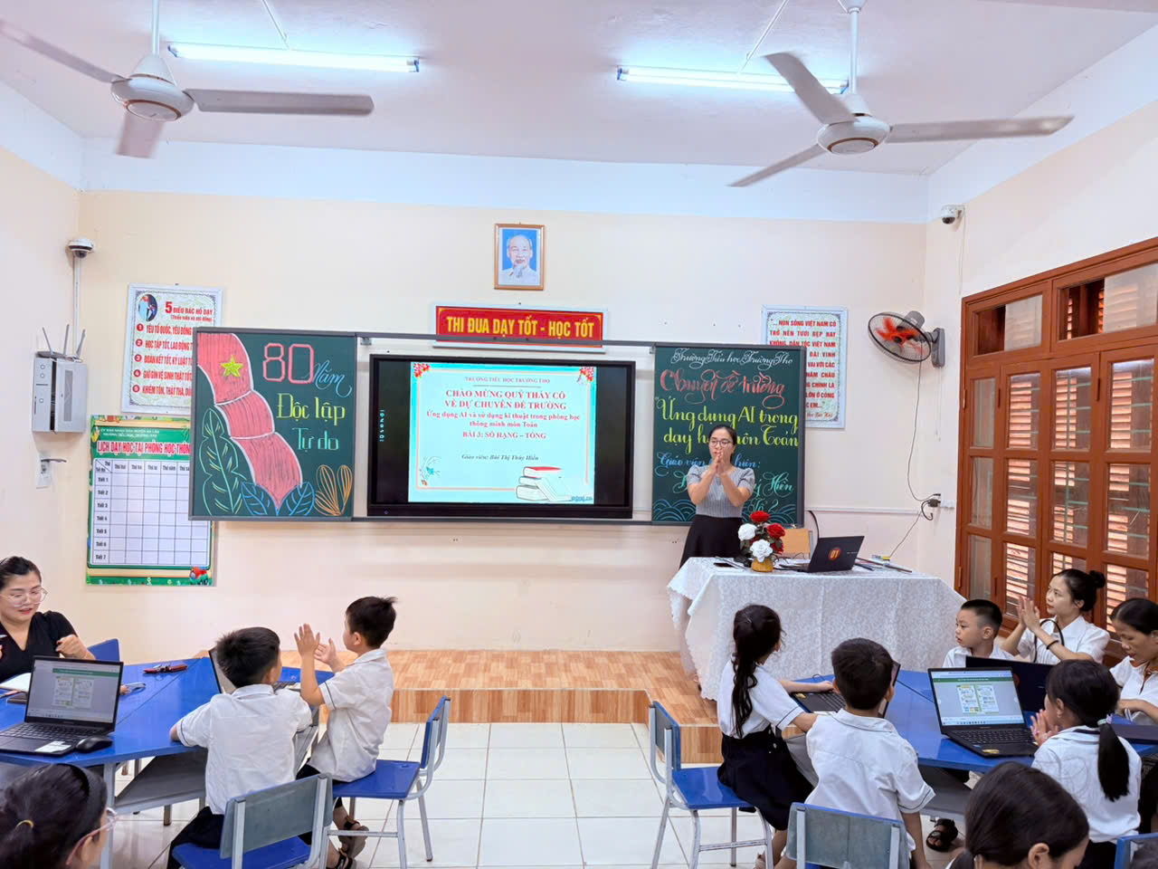 Ngày 27 tháng 8 năm 2025 tại phòng học thông minh. Cô giáo Bùi Thị Thúy Hiền của tổ 2 lên tiết dạy Toán 2 với sự tham dự của Ban Giám hiệu cùng toàn thể hội đồng sư phạm.